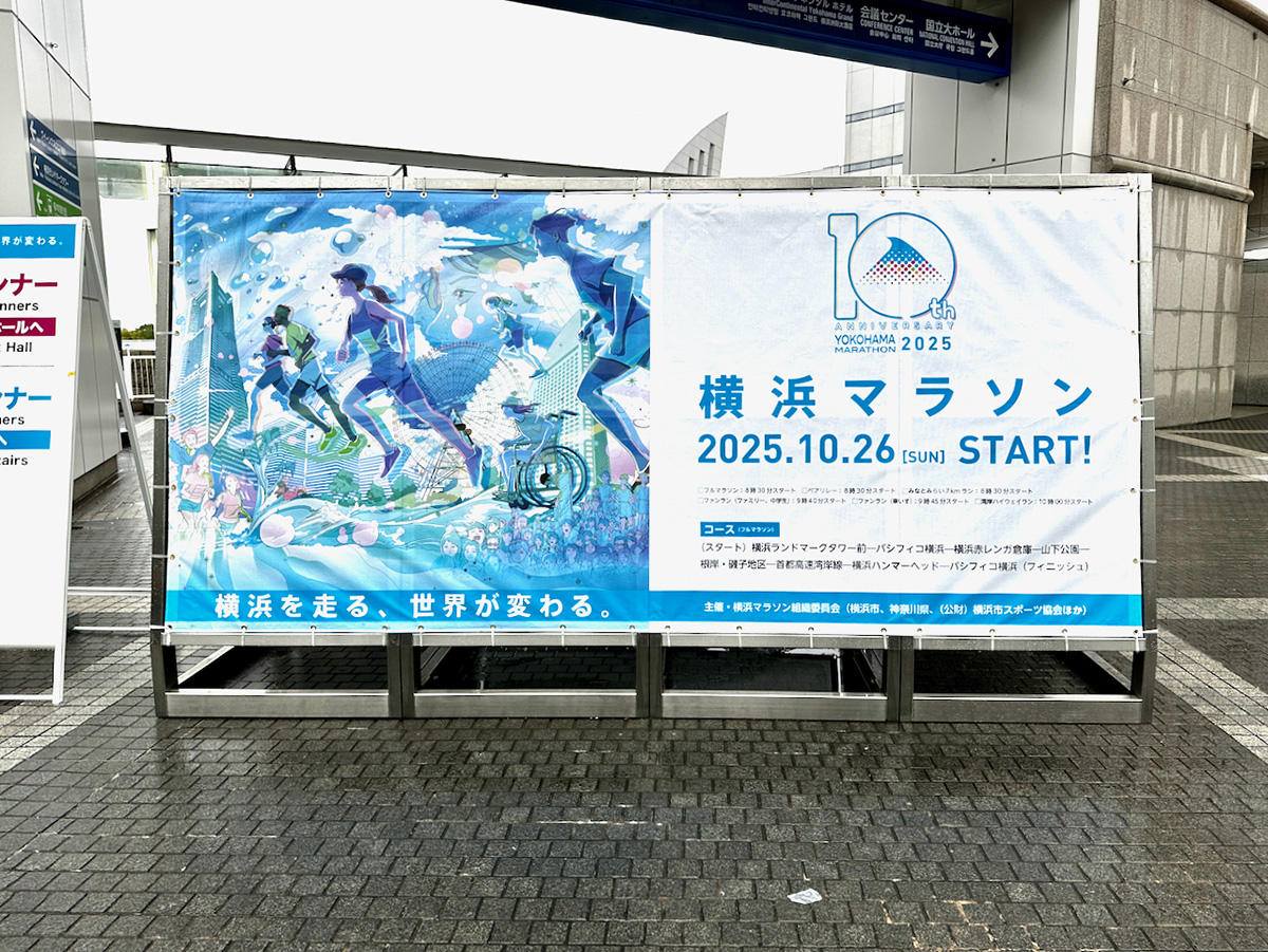 今年は事前の天気予報だと大雨。。。大雨のフルマラソンは経験がなく心配でしたが、当日朝には曇りベースの予報に変わり、会場のパシフィコ横浜に着く頃には小雨でした。