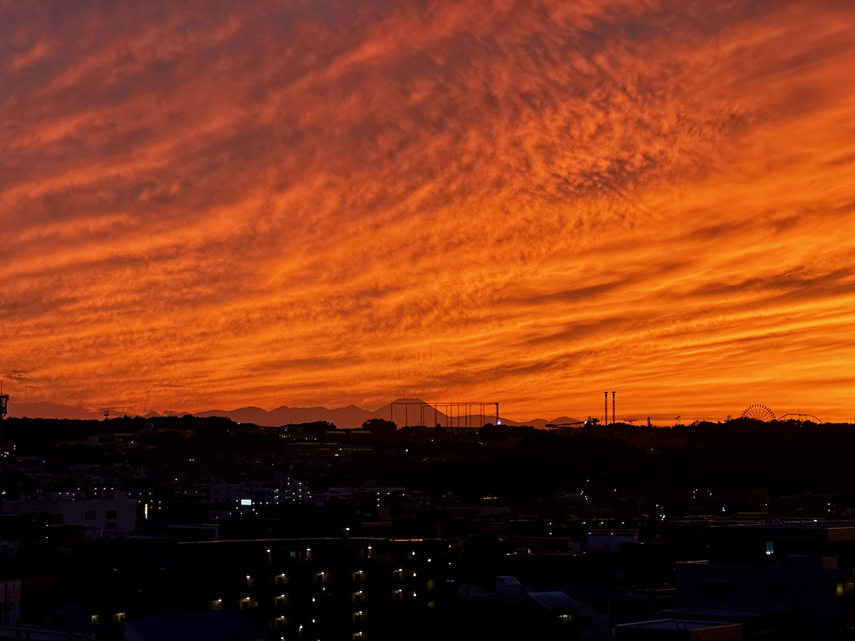 写真は久しぶりにきれいな夕焼けを見たのでパチリとしたもの。